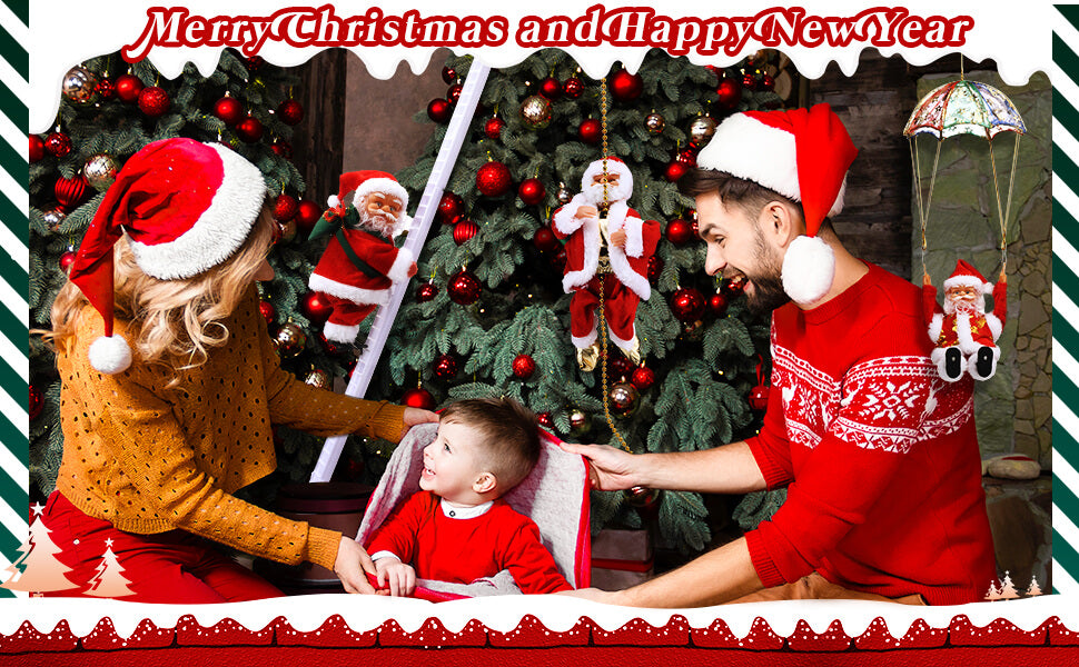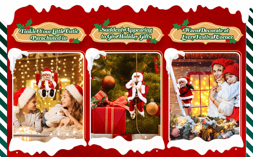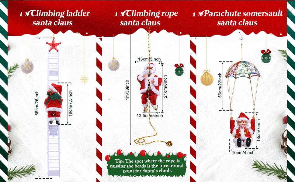 Bought the 3-pack for the family — rope, ladder, and parachute. The set ties the whole tree together. Kids named each Santa!